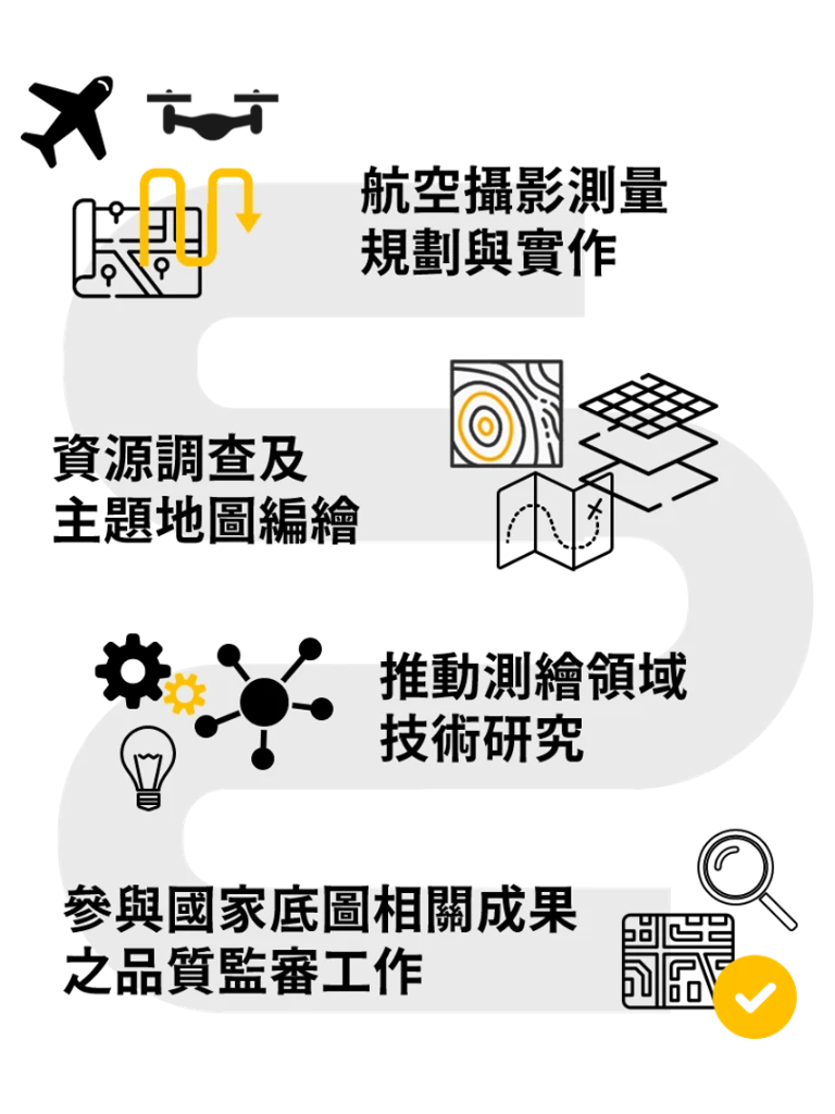 本業務部透過專業背景與豐富經驗,協助我國政府建立測繪相關技術研究,並積極參與國家底圖相關成果之測製與監審工作,協助確保成果品質,善盡社會責任,相關經歷列舉如下: