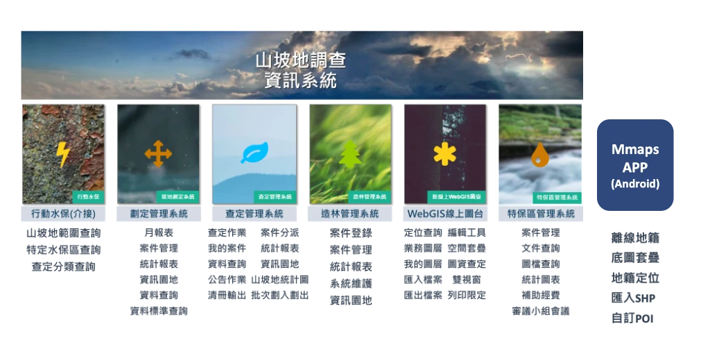 • 111年度推動可利用限度查定業務及山坡地調查資訊系統維運計畫。